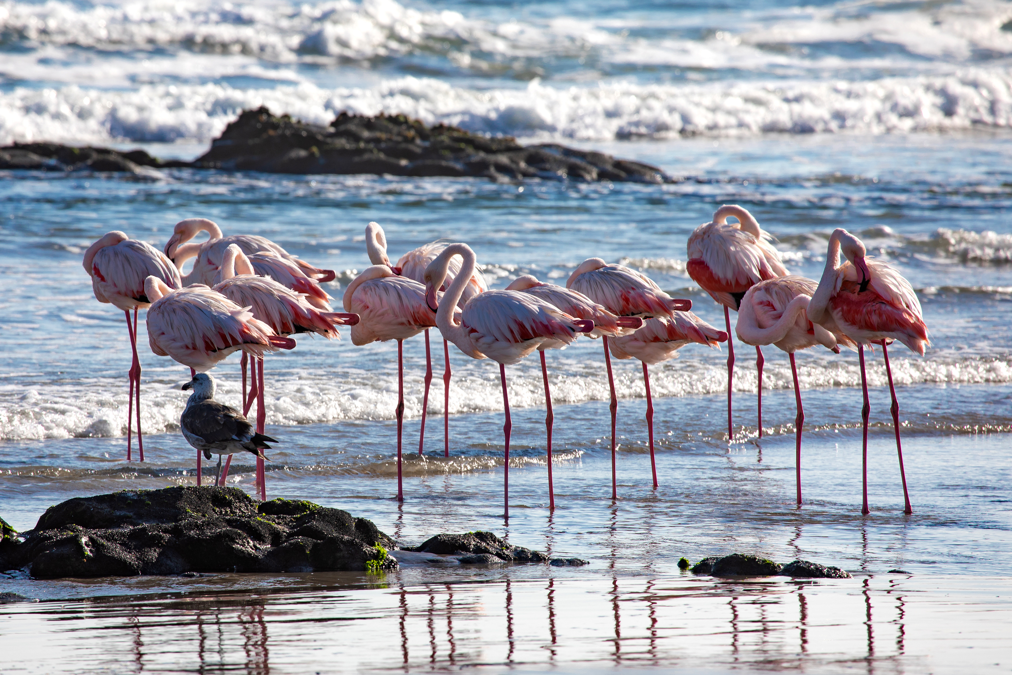 We regularly spend time on the wide open beaches of Namibia. What a pleasure it was to observe these flamingoes spending their day on the seashore. I am sure they were observing us doing the same...